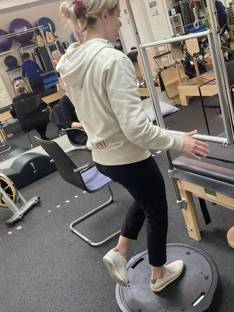 The next stage is to regain mobility and strength in the hips. Specific stretches based on your assessment can be advised by your physio and carried out during treatment or at home. This includes targeting hip extension, glutes, ITB’s, hip rotation, calves; there are countless exercises available to improve hip strength. Dr Grimaldi found in her research that functional weight bearing exercises activate the deeper parts of the gluteal muscles, and that most of our strength work is straight line. We then tend to lose lateral or sideways strength and rotational strength, which is very important for sport and even in daily life.